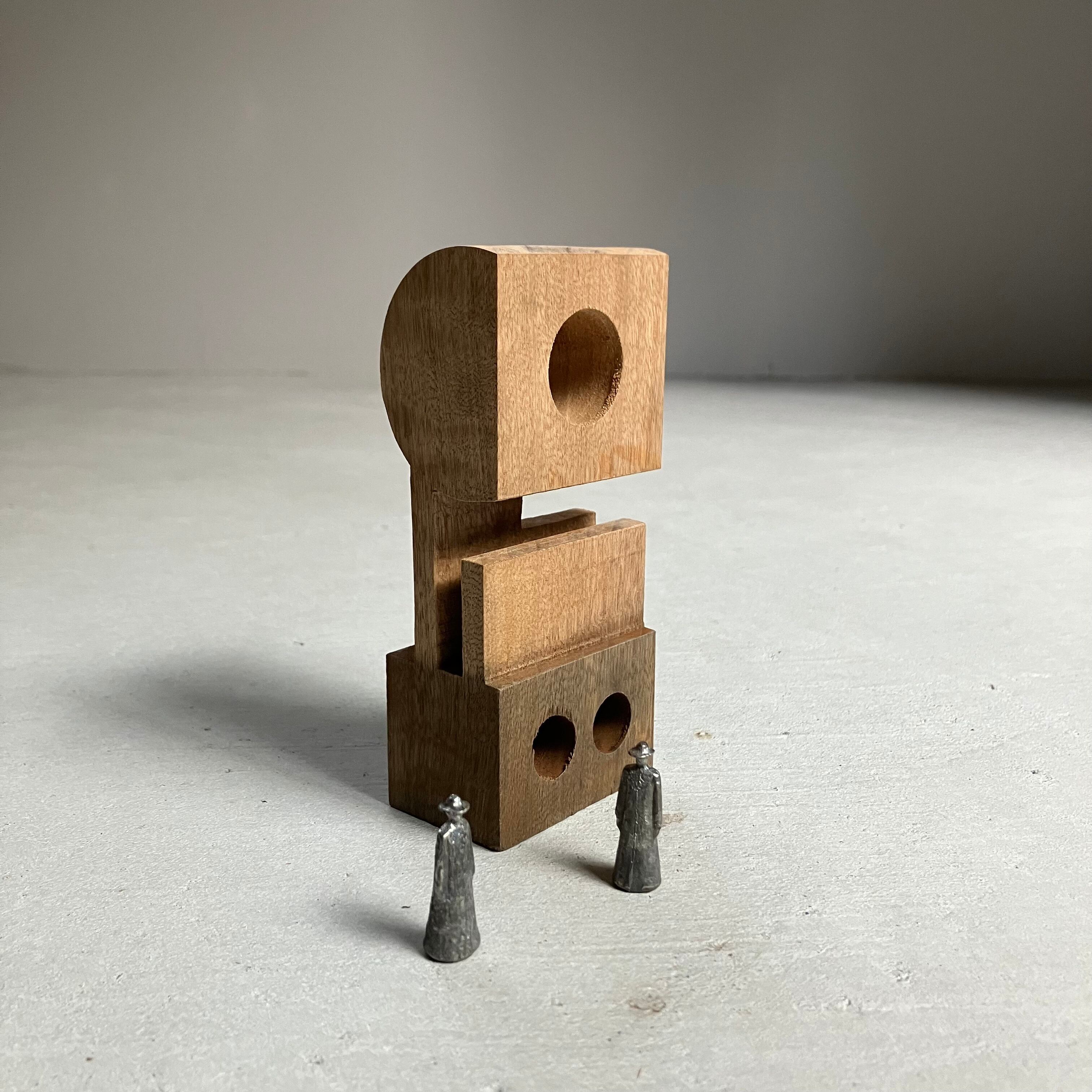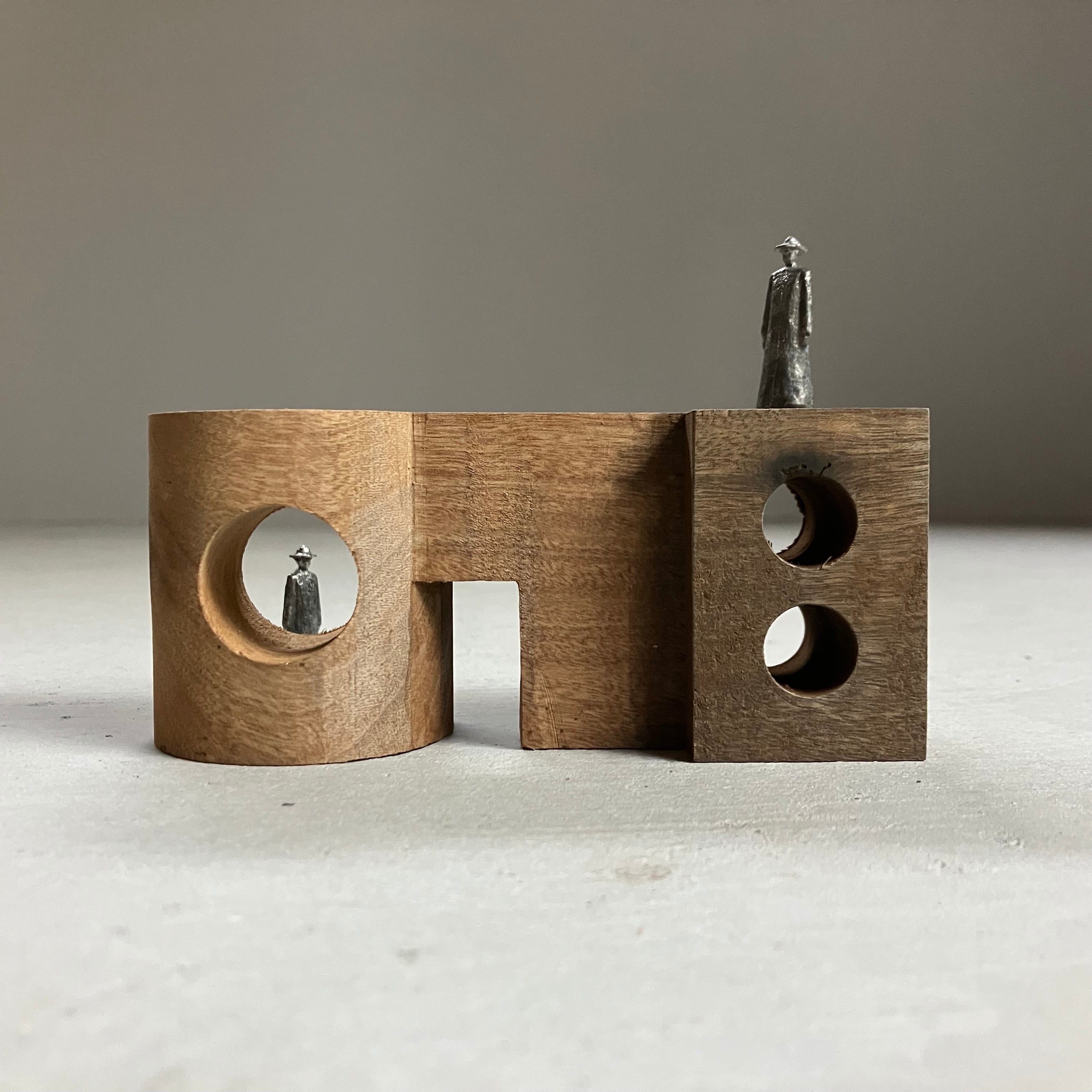 構造物と小さな人(2体 素材:ピューター)が入ったセットです。構造は決められた置き方は無く、人との組み合わせ方は自由です。専用の紙箱に入れてお届けしますので、箱を展示台の様にしてお愉しみ頂くことも出来ます。