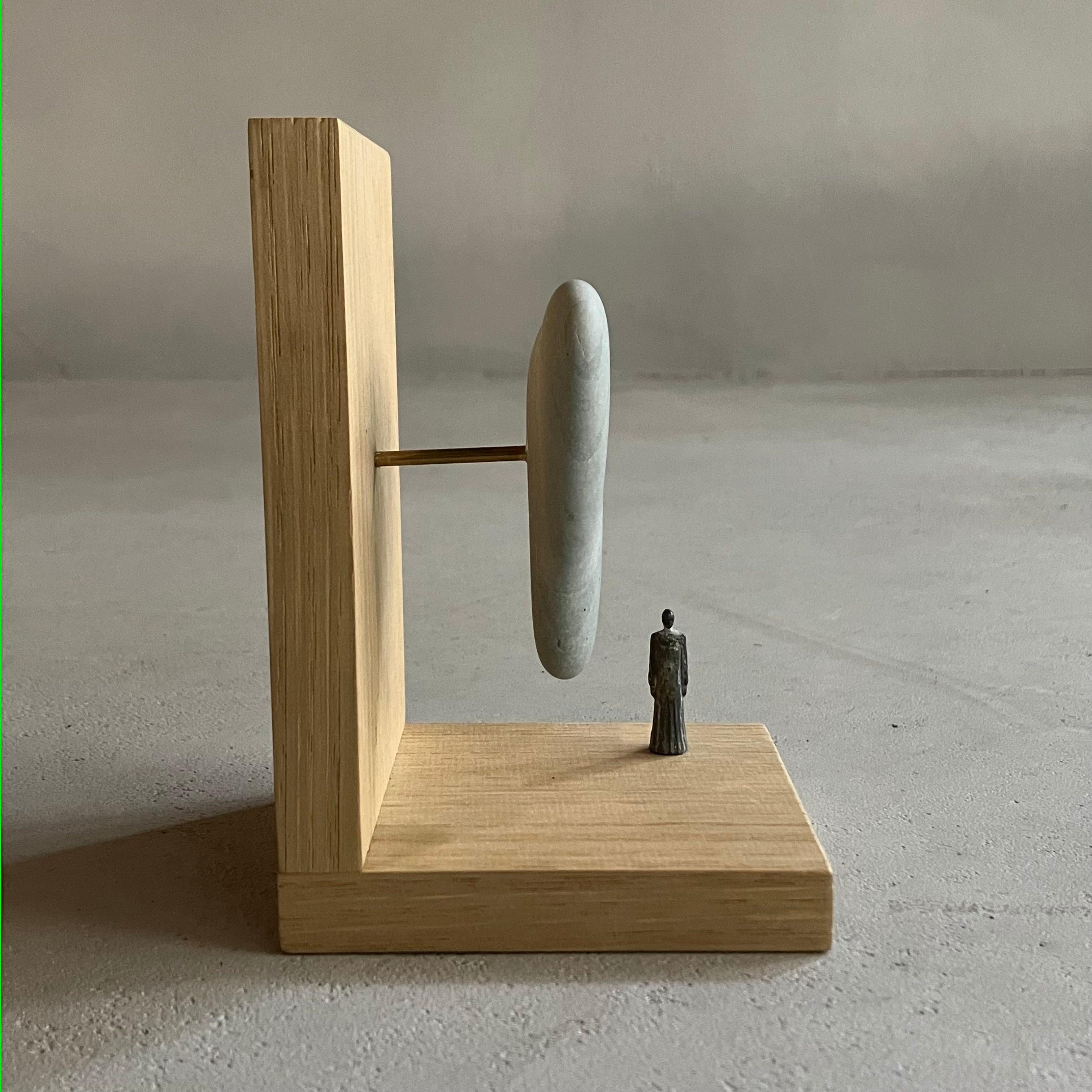 宙に浮かぶ石のオブジェを組み合わせ風景を作っています。