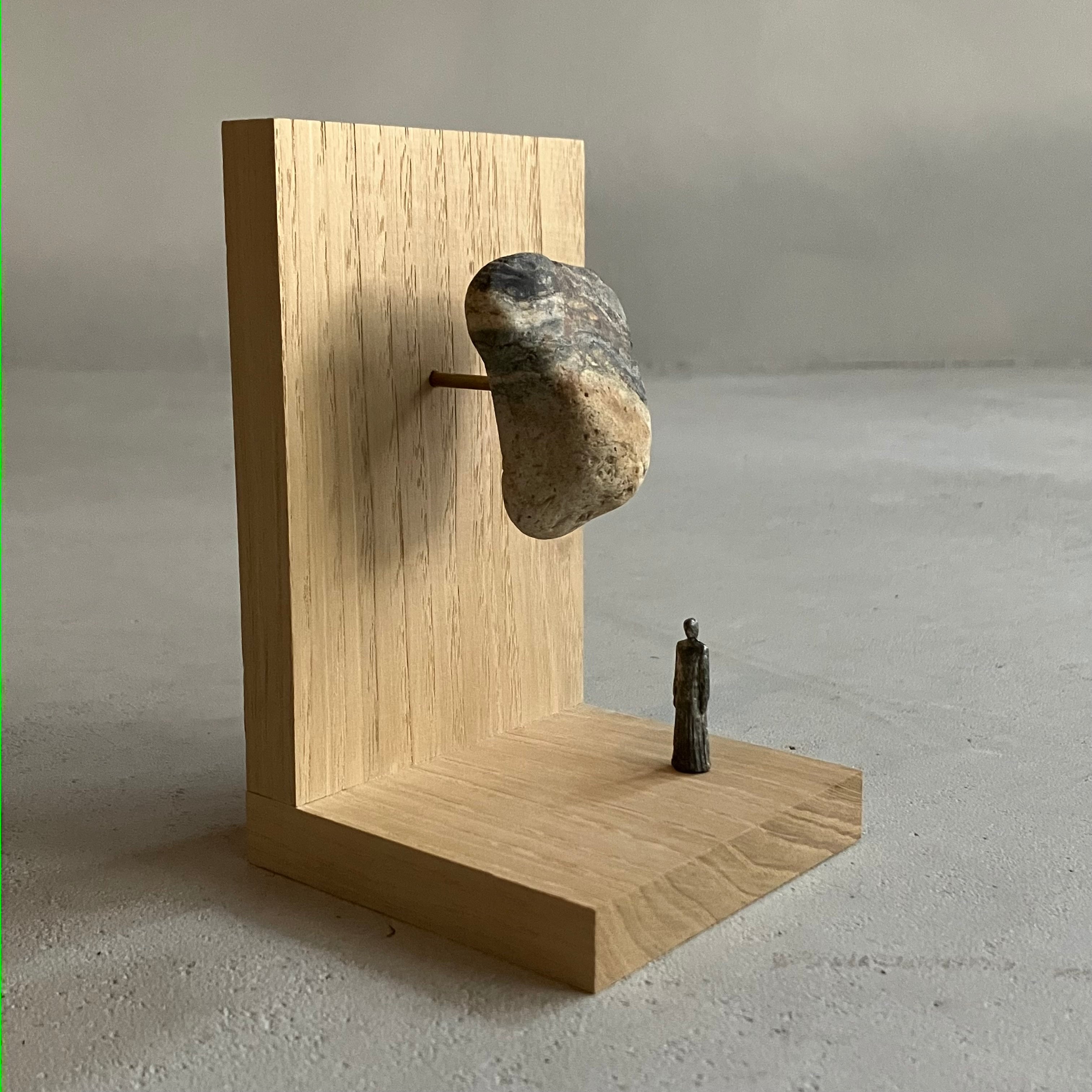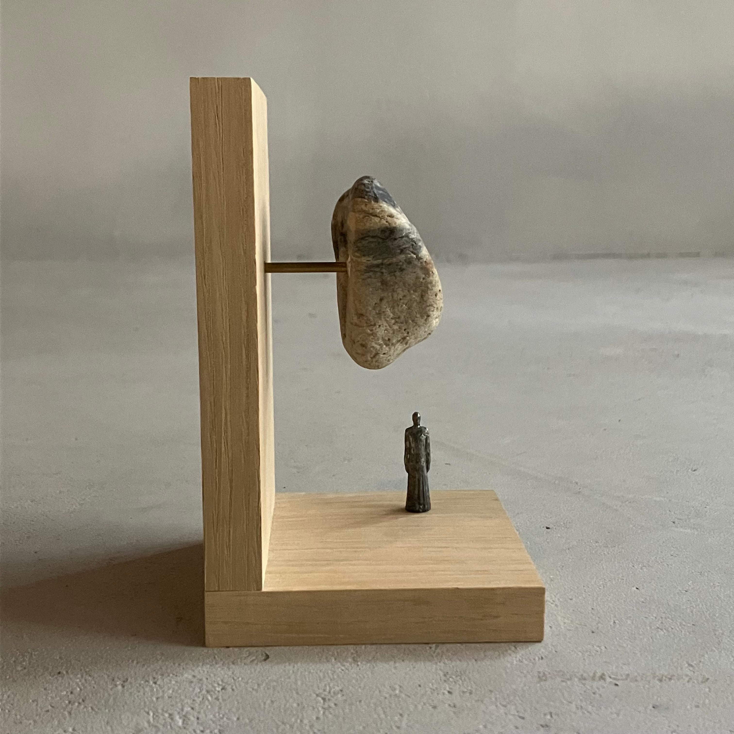 宙に浮かぶ石のオブジェを組み合わせ風景を作っています。
