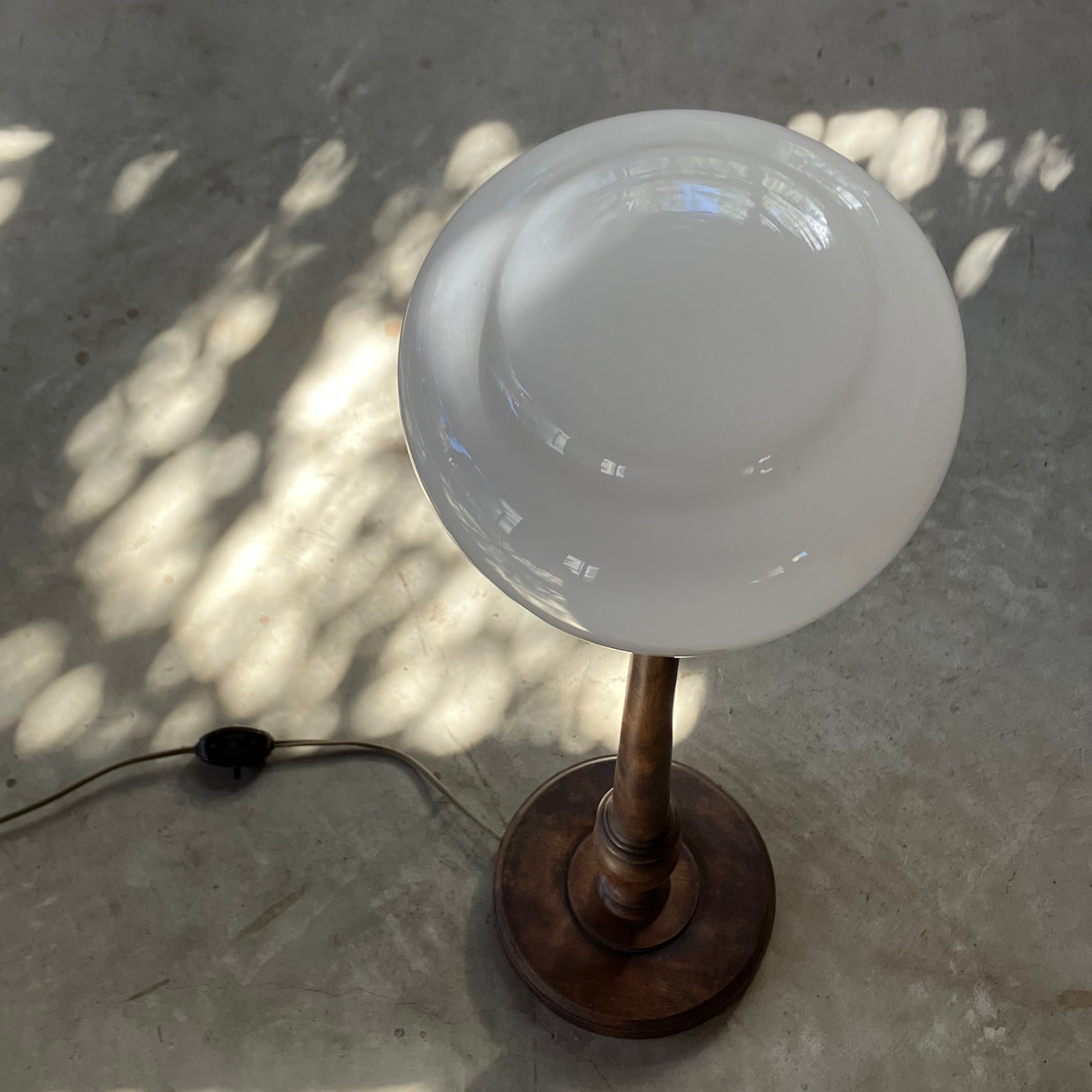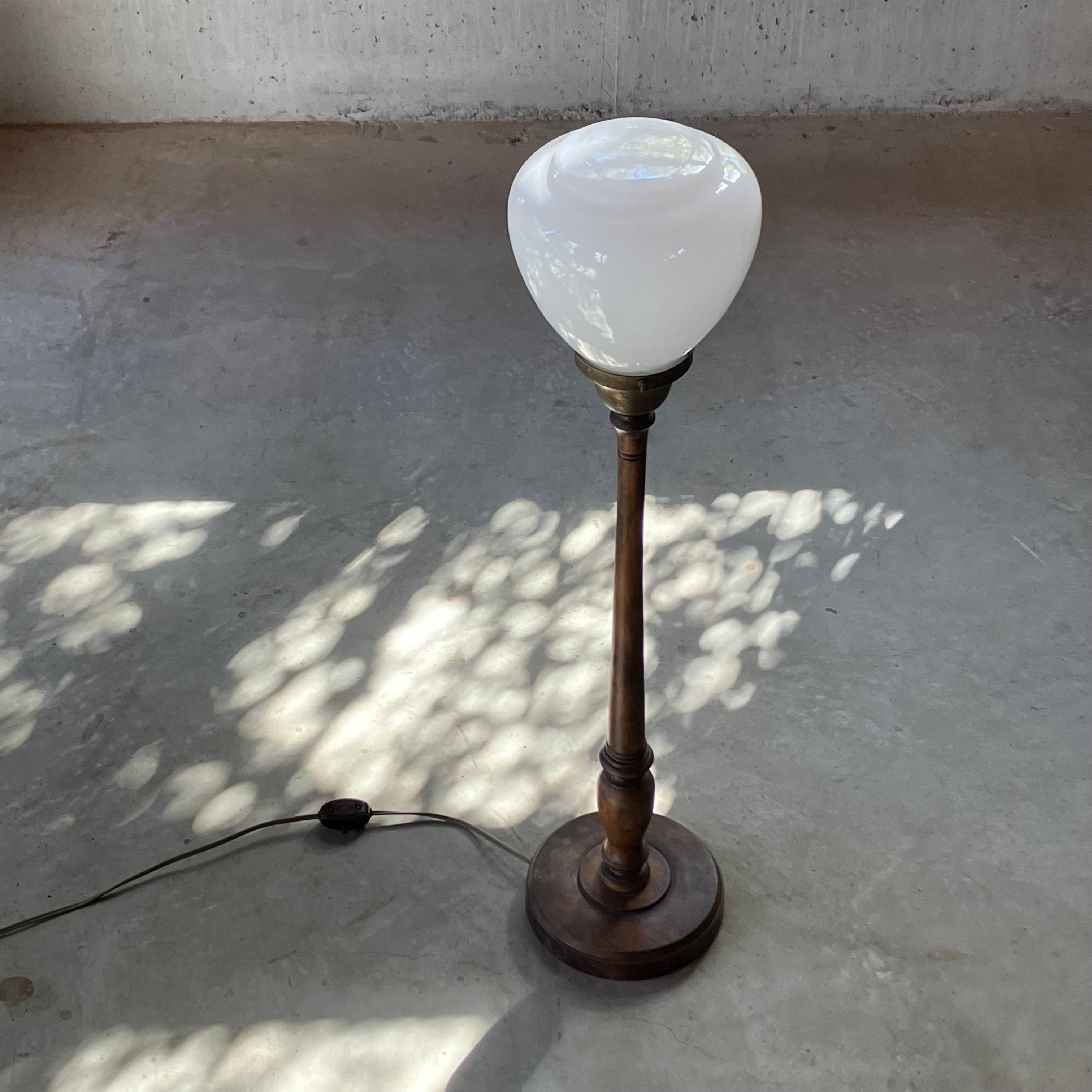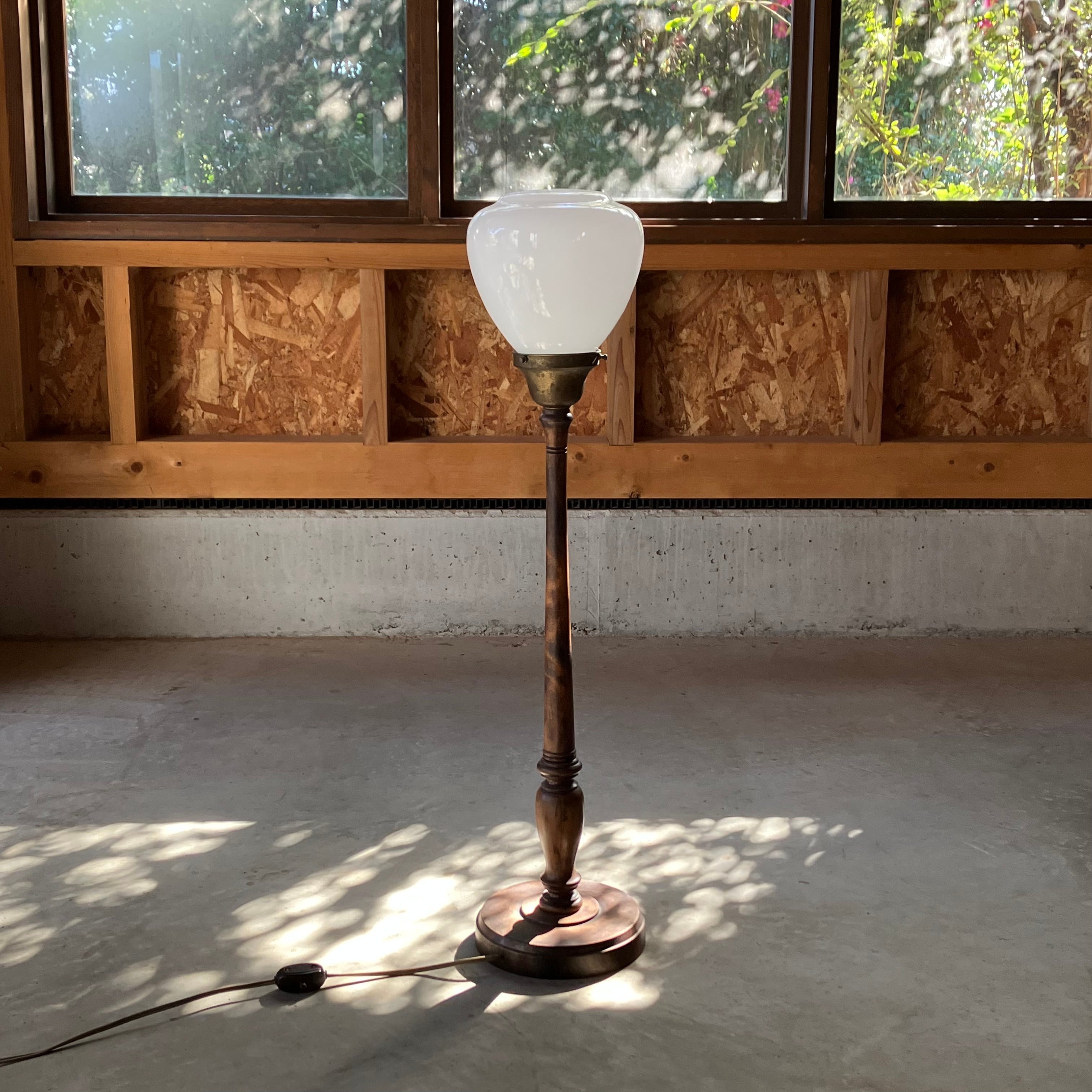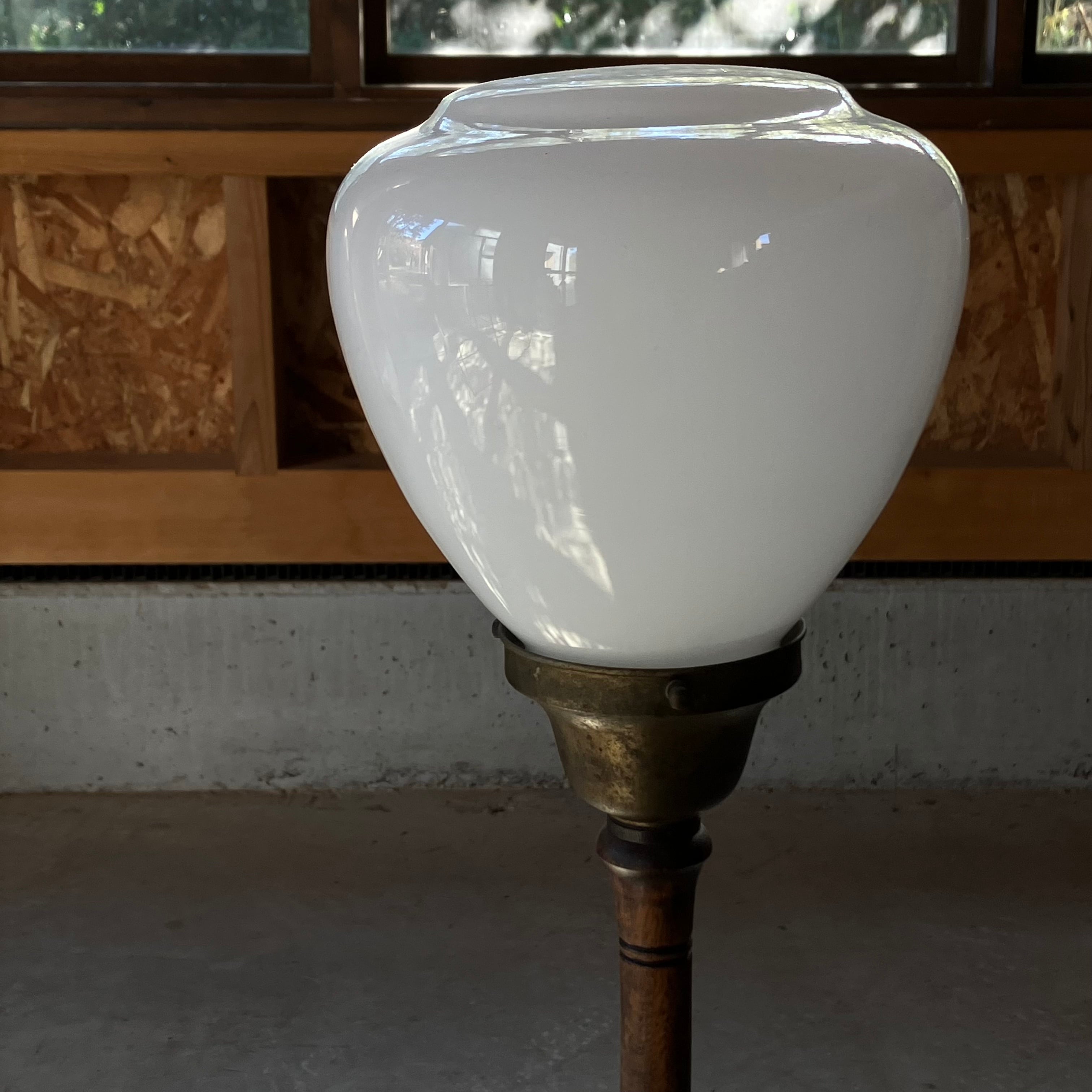1920年〜1940年頃で、木製部分、乳白ガラス、コンセントも当時のままの美しいライトです。
