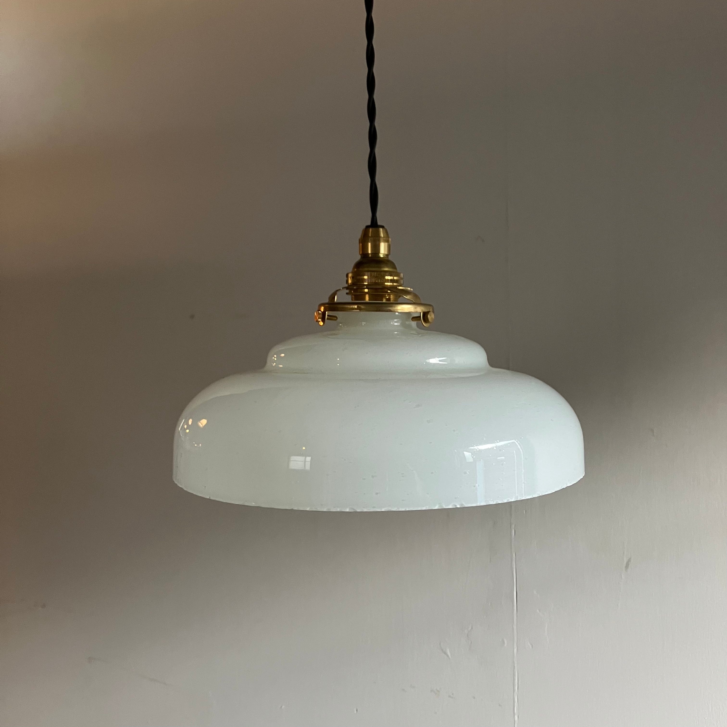 明治大正期から戦前にかけて作られた乳白硝子のランプシェード。