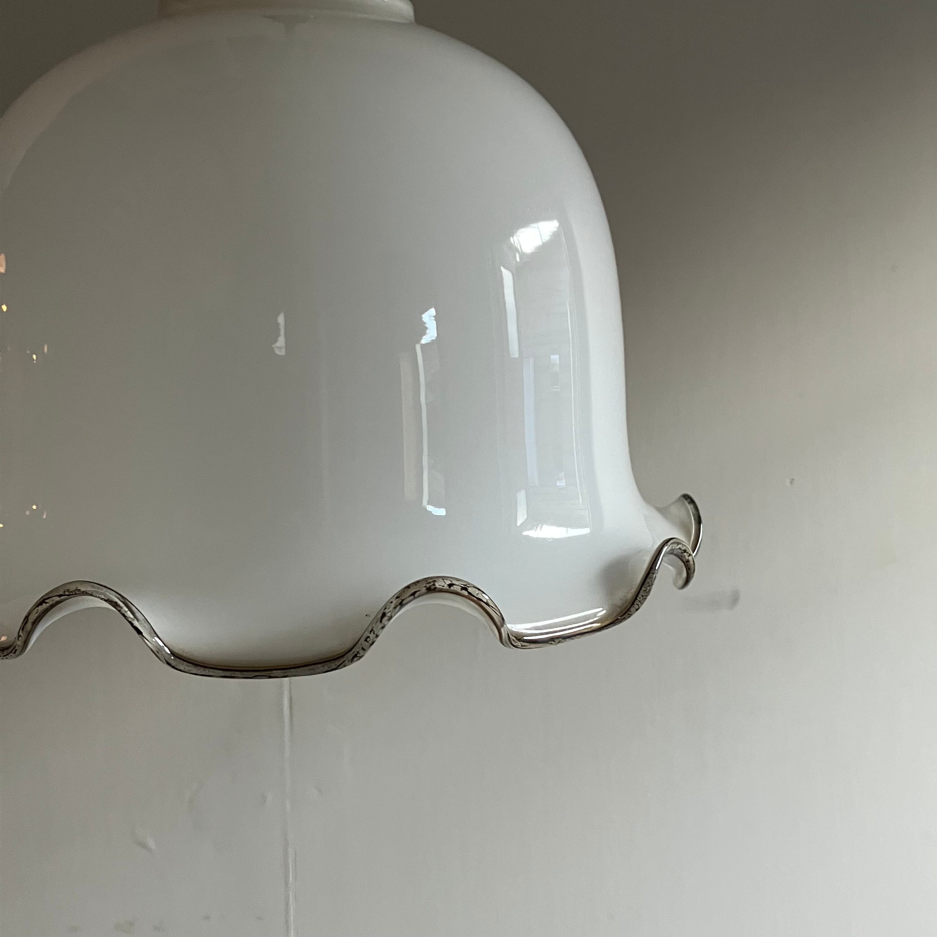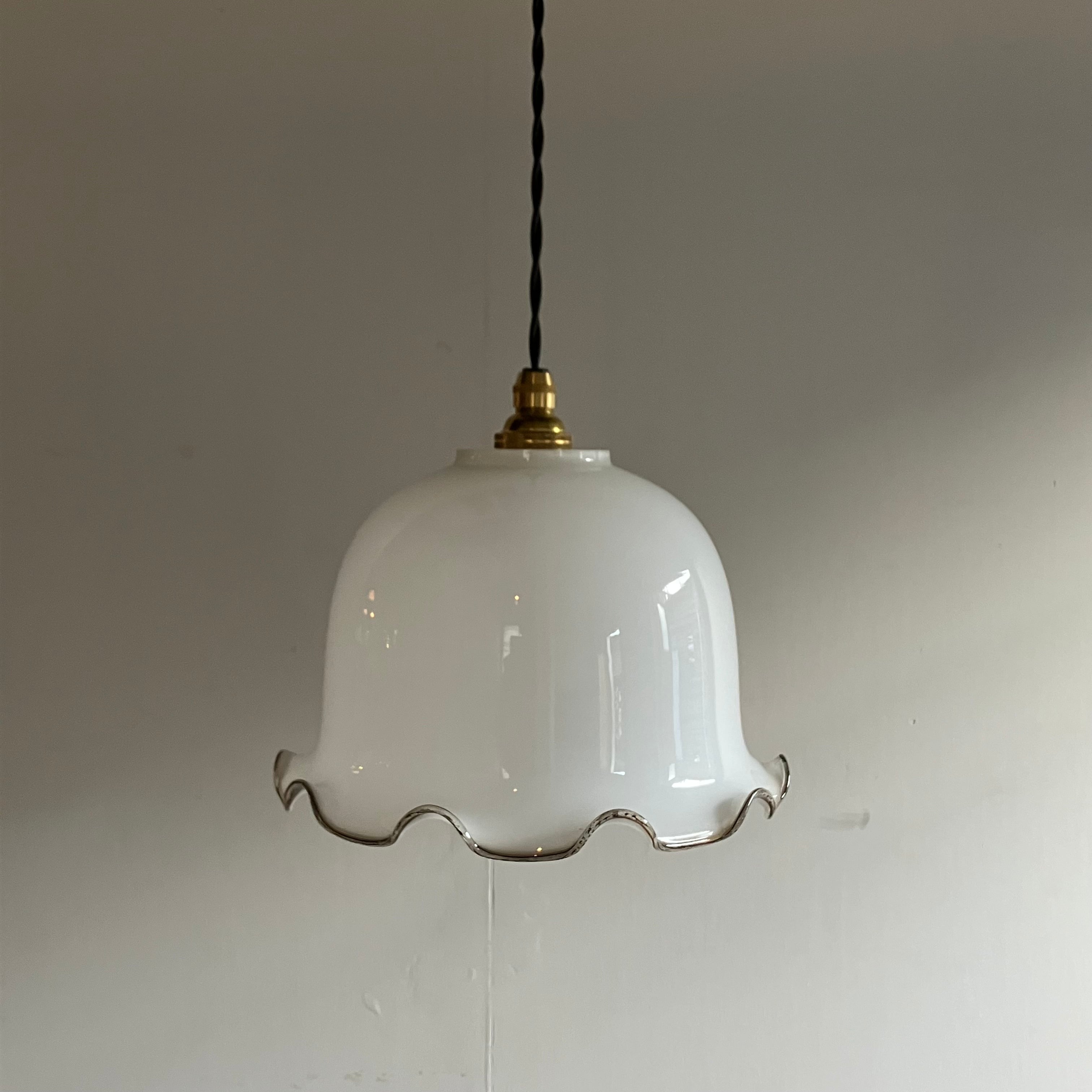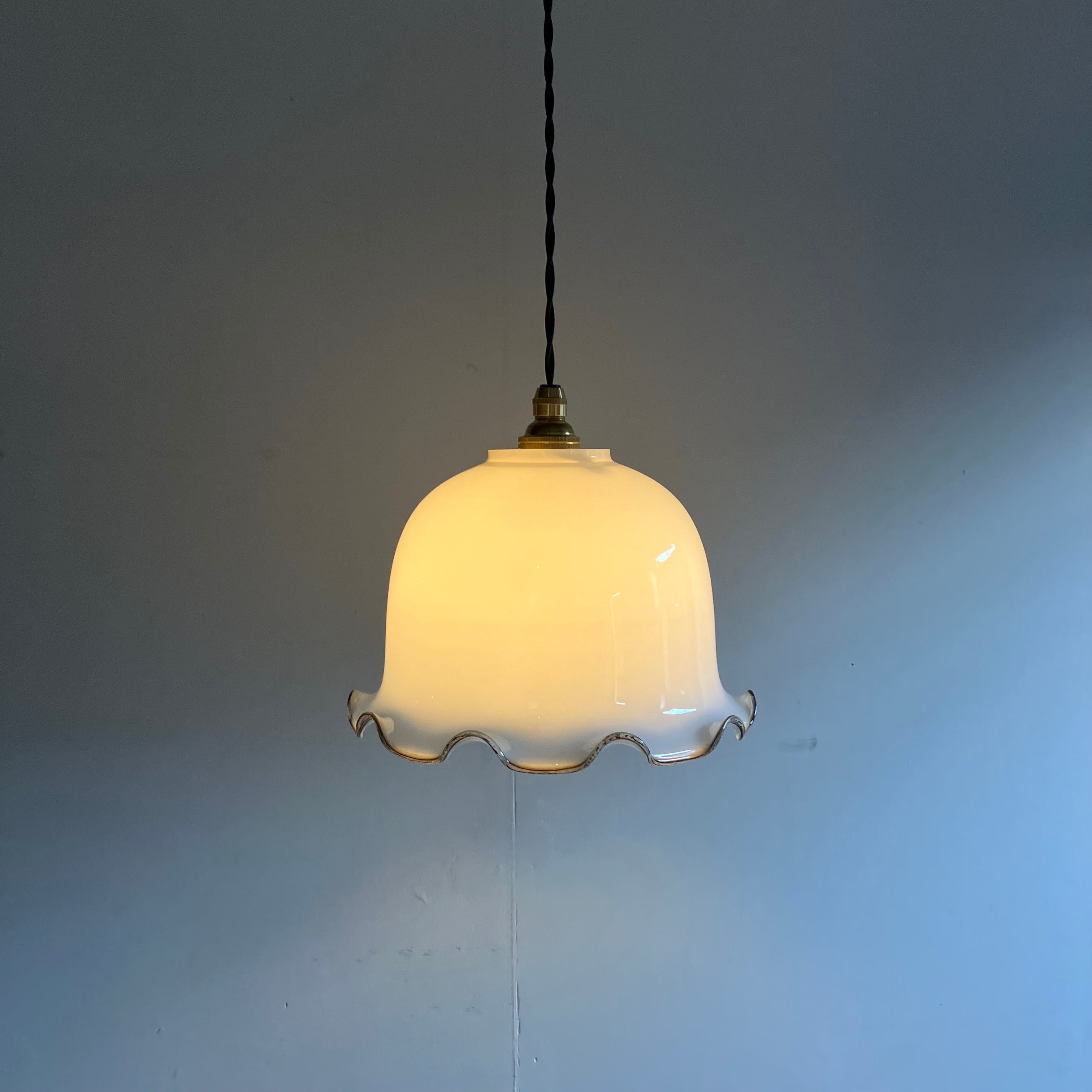 明治大正期から戦前にかけて作られた乳白硝子のランプシェード。