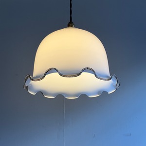 大正乳白硝子ランプシェード/輪花型/ japan antique