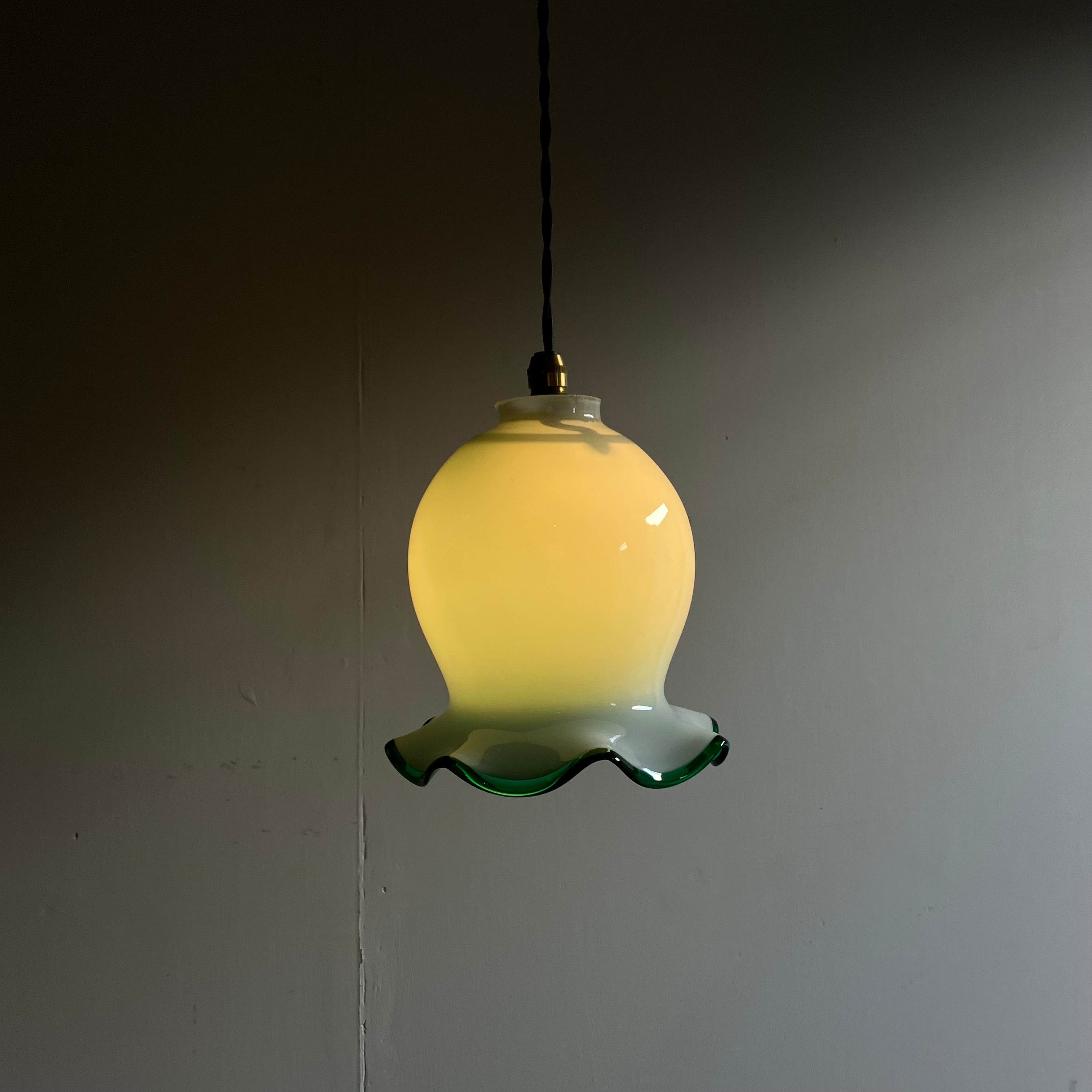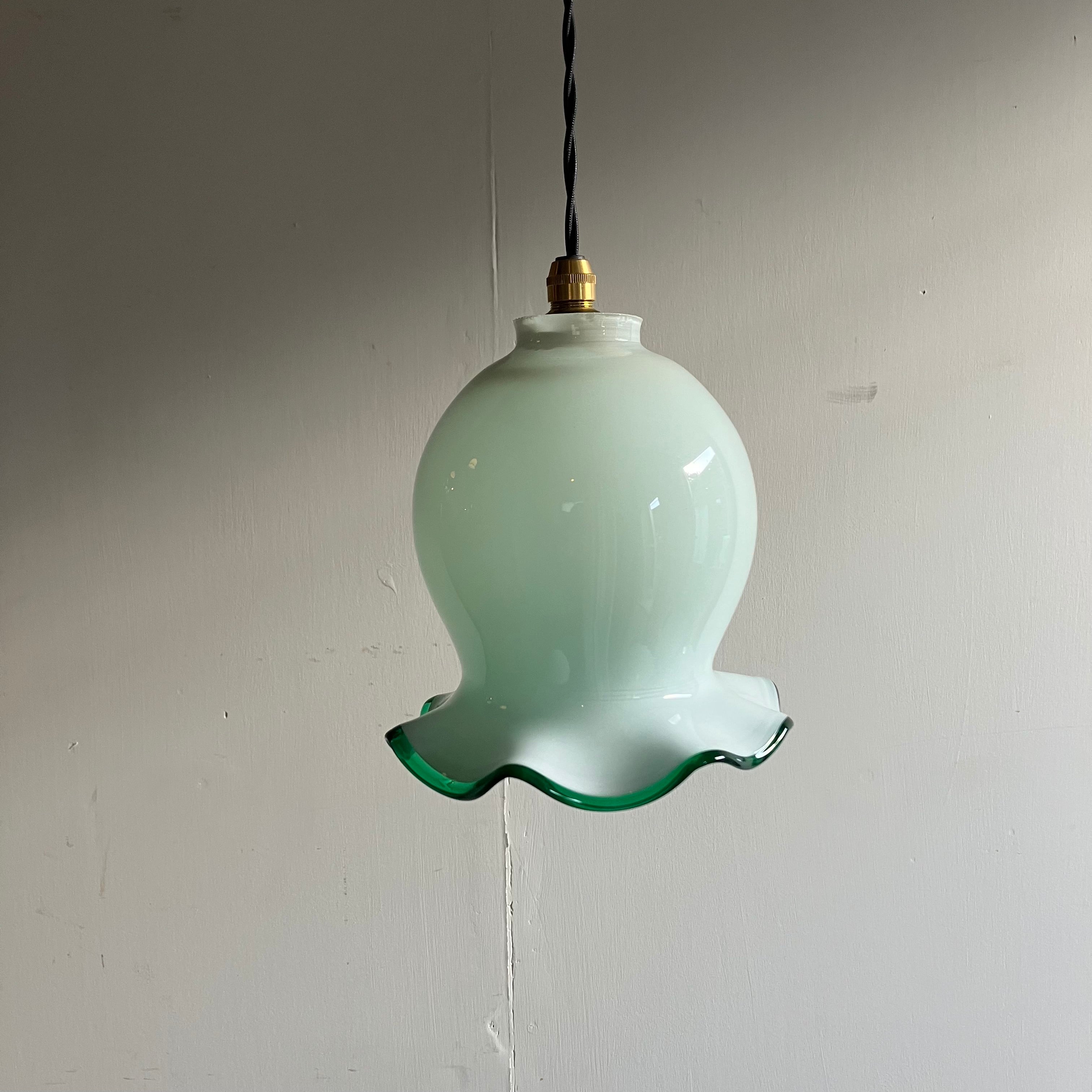 明治大正期から戦前にかけて作られた乳白硝子のランプシェード。